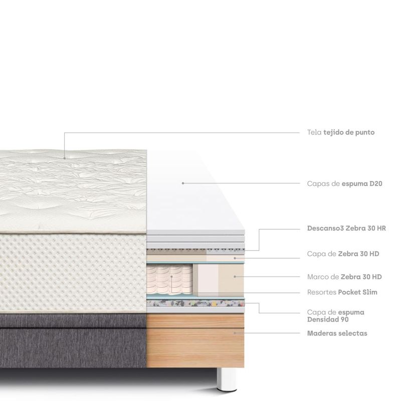 • Resortes Pocket Slim (mayor confortabilidad)