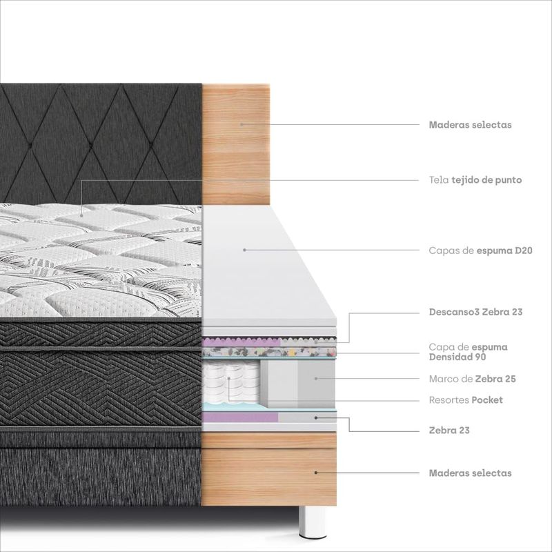 Cuenta con un diseño de Ergosoft que maximiza la sensación de comodidad al descansar y ofrece un soporte ideal en la posición natural del cuerpo y un descanso sin interrupciones toda la noche.